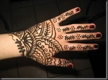 Henna is widely used in the Middle East and Asia to paint designs on the hands, feet, and other parts of the body. In the Middle East a wedding is often a time for a bride to be painted. Designs are often intricate. Kits are available from Amazon and other places. The designs generally last about one month and are not permanent tattoos. The designs are painted on using a stylus.
